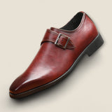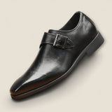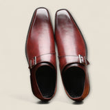 Elevate your style with our exquisite single-monk shoes, crafted from hand-burnished polished leather for a rich, tonal depth. The sleek silhouette is secured by a brushed gunmetal buckle, ensuring both elegance and durability.