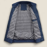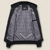 Crafted from a precision-woven nylon shell, this jacket is both lightweight and durable. The checkered cotton lining ensures comfort, while the rib trims and stand collar provide a sleek silhouette.