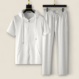 Experience ultimate comfort with our Ultra-Soft Stretch Fabric Set. Designed for your everyday lifestyle, this set features a short-sleeve zip hoodie and relaxed drawstring pants, providing a breathable fit perfect for any occasion—whether you're on the go or enjoying a cozy day at home.