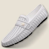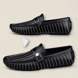 Elevate your style with our premium pinstriped full-grain leather driver shoes. Designed for both comfort and sophistication, these shoes feature hand-stitched contrast lines that add sharp dimension without the bulk.