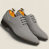 Experience unparalleled comfort and style with our hand-lasted herringbone canvas shoes. The breathable shell is crafted from fine herringbone cotton-linen canvas, ensuring a crisp look and feel. Each pair is stitched with surgical precision for durability and elegance.