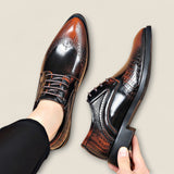 Elevate your style with our premium Derby shoes, expertly crafted with a sleek leather upper that features embossed texture detailing for a sophisticated look. The gradient burnished finish adds depth and contrast, making these shoes a standout choice for any occasion.