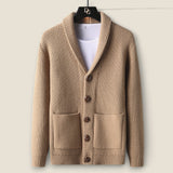 Experience ultimate comfort with our Textured Waffle-Knit Shawl Collar Sweater. The unique waffle-knit design adds depth and breathability, ensuring you stay cozy without sacrificing style.