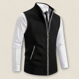 Discover the perfect blend of comfort and sophistication with our wool blend vest. Designed for the modern individual, this vest features a sleek full-zip front and a structured stand collar, making it a polished addition to any outfit.